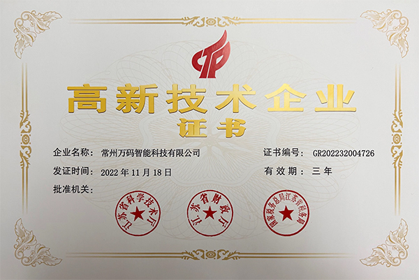 萬(wàn)碼高新技術(shù)企業(yè)證書